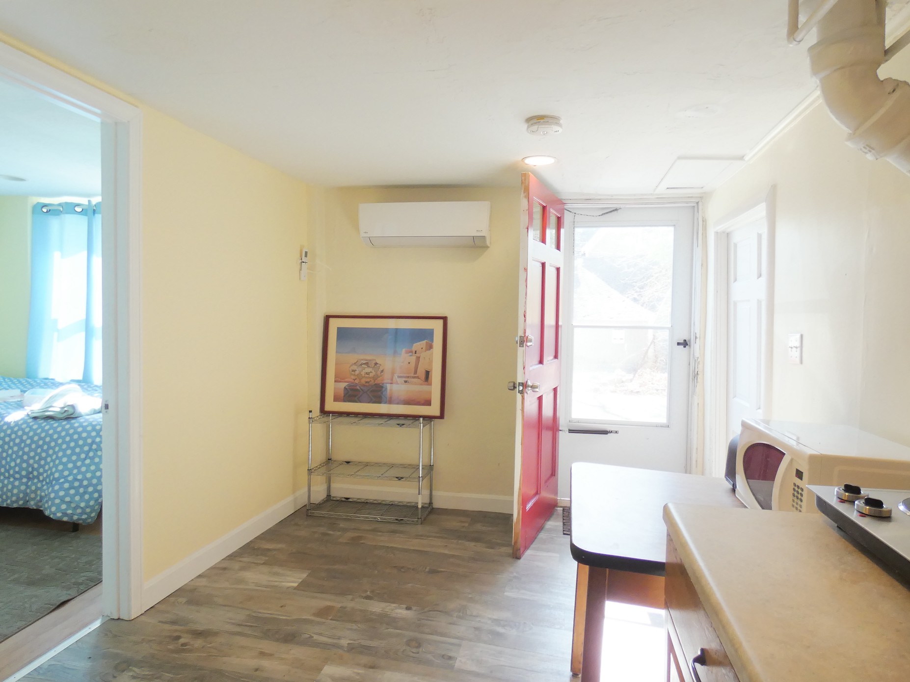 Live in the best city of the US by the Wall Street Journal Review.  A Unique place combining suburban comfort, quietness, and safety with very convenient public transportation to Boston, Brookline, Longwood Medical. Hardwood floors,  Laundry. A comfortable renovated ground floor two-bedroom/one bathroom apartment. New heat-pump heating/cooling. 2 private entrances. Large windows in bedrooms. Free Parking.  The kitchen includes an electric cooktop, microwave, electric kettle, refrigerator.